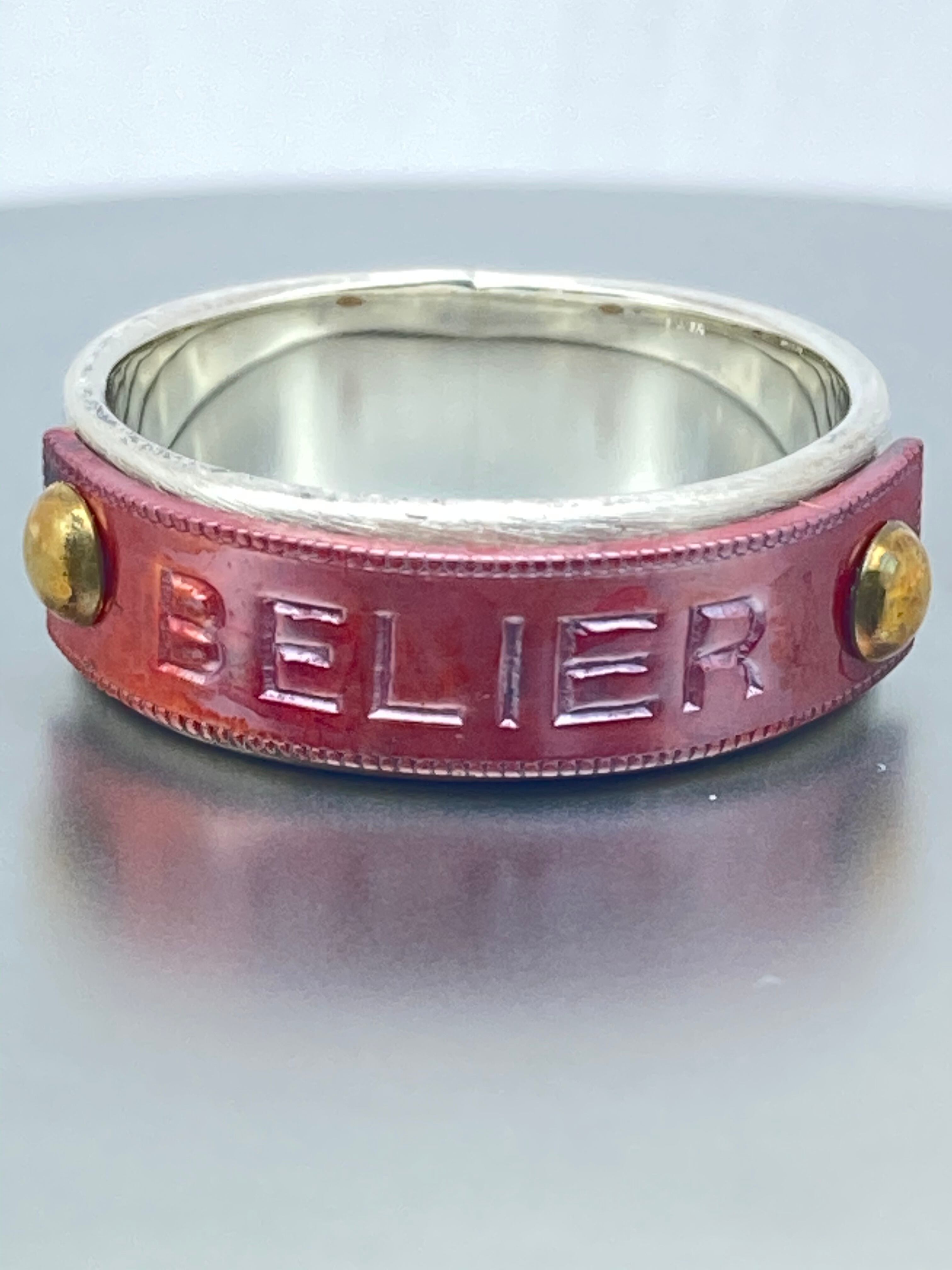 緋銅プレートにフランス語の星座刻印を打ち、リベット留めをしたシルバー製リングです。
